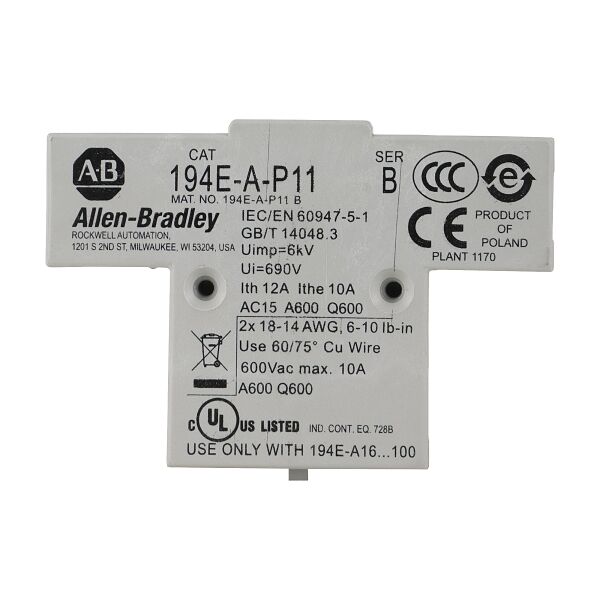 Part of the Allen-Bradley Bulletin 194E range, this auxiliary contact block enhances operational flexibility in industrial power isolation systems while maintaining dependable performance in demanding environments.