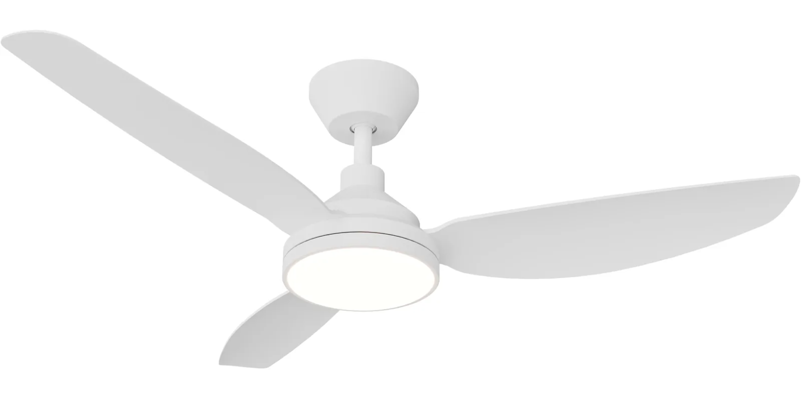 With rust-resistant ABS blades and a strong die-cast aluminium motor, the Clayfield is made for lasting performance in both indoor and covered outdoor spaces. Its integrated 20W tri-colour CCT LED light, paired with a frosted diffuser, gives you flexible lighting options to match any mood or setting. Operation is simple with the included 6-speed wall controller and remote, offering handy features like timers, reverse mode for winter, a natural “sea breeze” setting, and a security function for peace of mind.