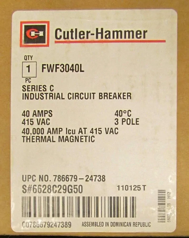 The Cutler Hammer Westinghouse Series C 32 amp triple pole molded case circuit breaker (model FWF3032L) delivers durable and reliable overcurrent protection for three-phase electrical circuits in industrial, commercial and maintenance applications. Designed to meet rigorous performance expectations, this 32 A MCCB features thermal-magnetic trip protection and a high interrupting capacity suitable for low-voltage power distribution systems. Backed by the trusted legacy of Cutler Hammer and Eaton, the Series C breaker is a dependable choice for qualified electricians and electrical professionals across Australia.