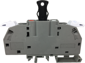 Pivot DATT-002-1 disconnect and test terminal is a compact DIN rail mounted terminal designed to provide safe isolation and testing access within low voltage control and distribution circuits. The terminal features an integrated black disconnect link rated at 32 amps, allowing technicians to quickly open the circuit for maintenance, commissioning or fault-finding without removing wiring. Its modular design suits both G-rail and standard DIN rail installations, making it ideal for switchboards, control panels and industrial automation applications.