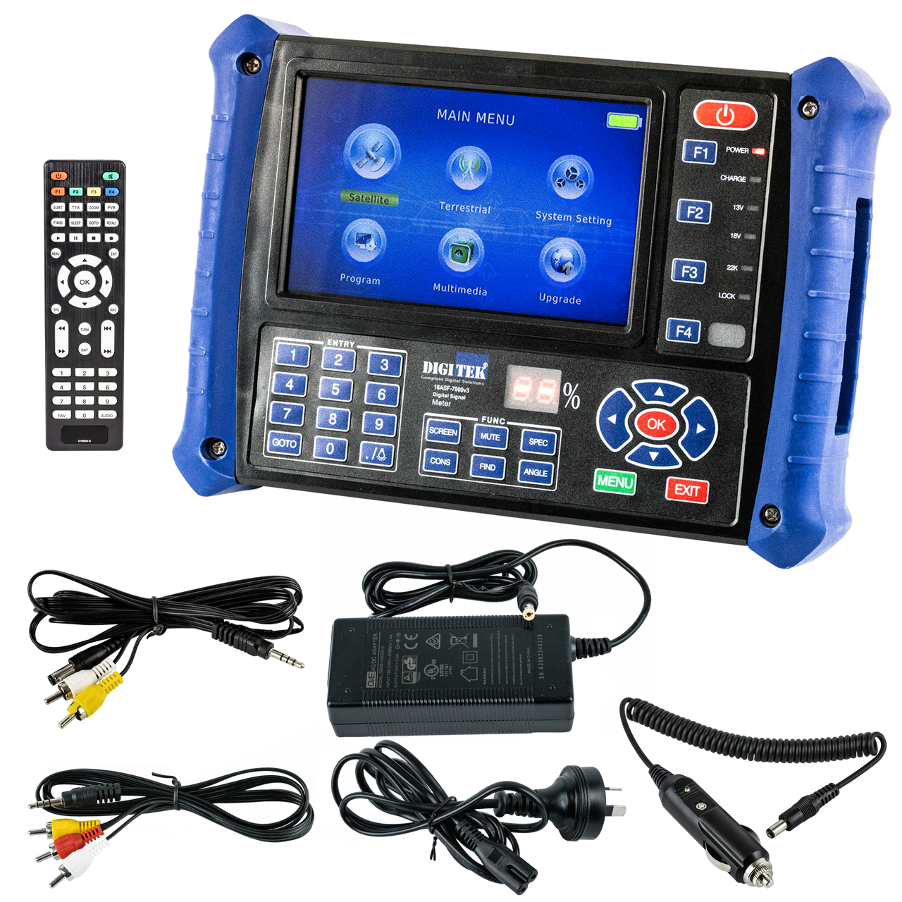 Unlock professional-grade satellite and terrestrial signal hunting with the Digitek 18ASF-7000v3 Digital Signal Meter, a versatile, portable powerhouse that combines DVB-S/S2 and DVB-T/T2 tuning in a user-friendly 5" TFT LCD display—like a field-ready toolkit for installers, DIYers, or AV enthusiasts aligning dishes or antennas for flawless HD viewing. Featuring multi-lingual OSD, spectrum analysis, real-time constellation views, blind satellite search, and shortcut keys for lightning-fast navigation, this meter not only pinpoints signals but doubles as a media player with USB 2.0 for updates, playback, video recording, time-shift, and EPG browsing. With HDMI output for HDTV monitoring, AV in/out for CCTV, built-in speaker/buzzer/LED for feedback, and a 4000mAh Li-Ion battery for 5+ hours of runtime, it's the all-in-one device for quick boosts in rural boosts or complex setups. Operating from 0-45°C with 600MHz CPU, 64MB flash, and 1GB DDR, Digitek's meter delivers precision in a compact 210x150x52mm frame (0.93kg)—align faster, view better, and conquer connectivity with ease!