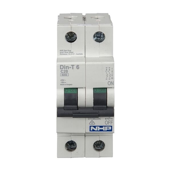NHP DIN-T Miniature Circuit Breaker 32A 2 Pole 6kA C Curve