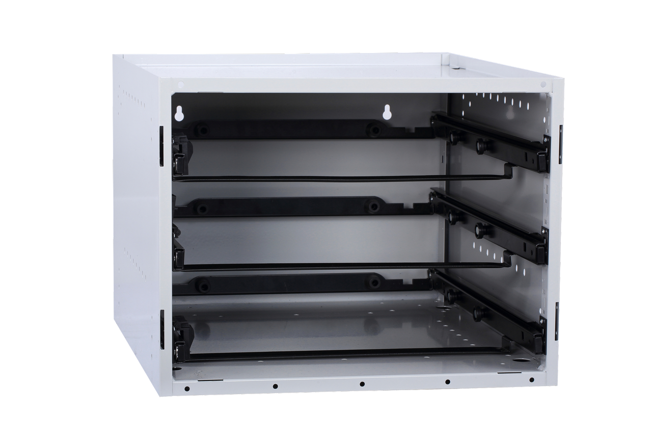 SCS3S StorageTek Storage Cabinet suitable for 3 small cases. Can be customized with StorageTek Blue, Grey, Black or Red coloured cases with a solid ABS Lid or a clear PC lid or other leading brands into our empty cabinet. These cabinets are suitable for Electricians, Plumbers, Data Cable installers, HVAC, TV Antenna Installers, Mechanics and many others in business, office, workshop or at home. All cabinets come with L shaped mounting feet and appropriate hardware to allow secure mounting in a van or onto a workbench or even under a workbench. Commercial build quality.