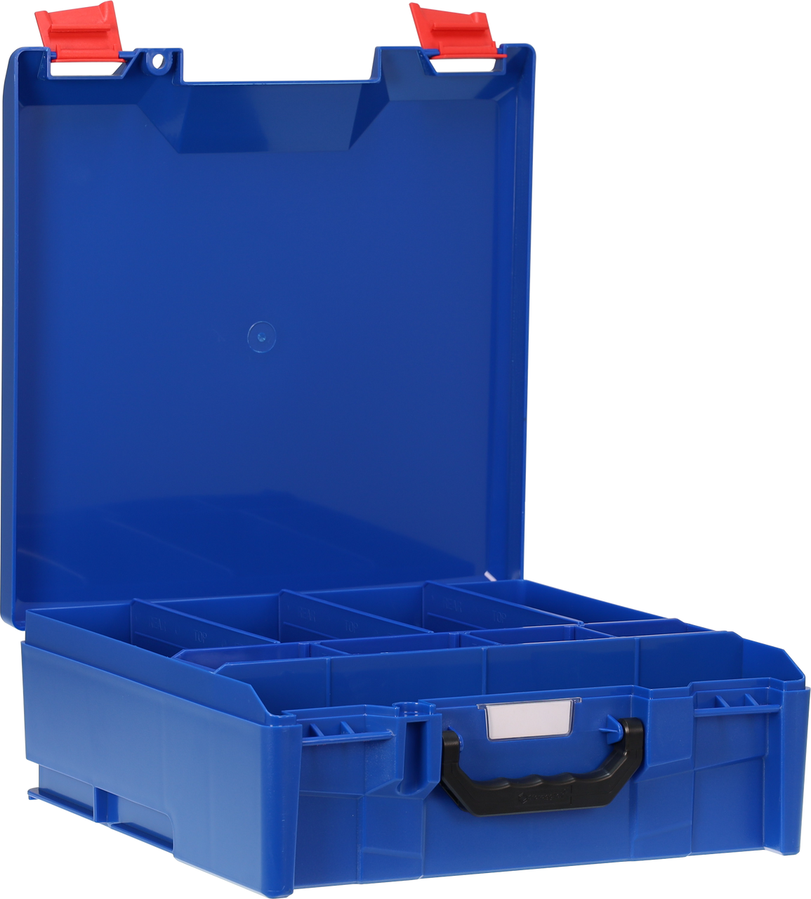 This is a large ABS Blue Case with a solid ABS colored lid. These cases are suitable for Electricians, Plumbers, Data Cable installers, HVAC, TV Antenna Installers, Mechanics and many others in business, office, workshop or at home. A visually styled outlook providing a true tradesman carry and storage case for all their parts