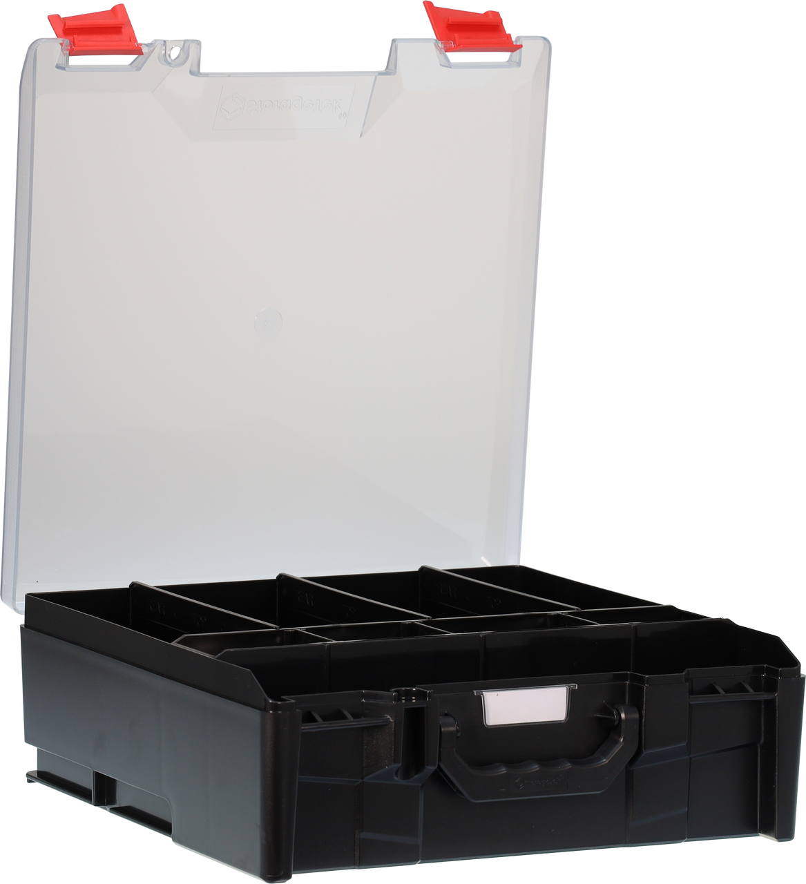 StorageTek Case STLC-BK. This is a large ABS Black Case with a Clear PC lid. These cases are suitable for Electricians, Plumbers, Data Cable installers, HVAC, TV Antenna Installers, Mechanics and many others in business, office, workshop or at home. A visually styled outlook providing a true tradesman carry and storage case for all their parts.