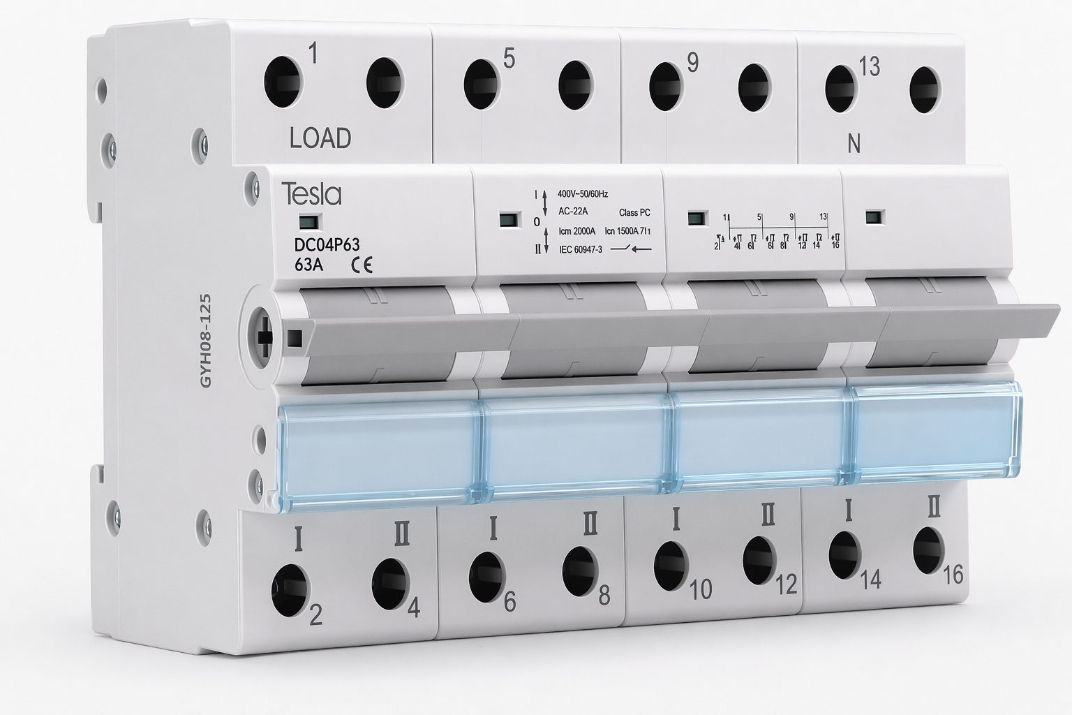 Tesla 63A 4 Pole Off Load Changeover Switch Din Rail