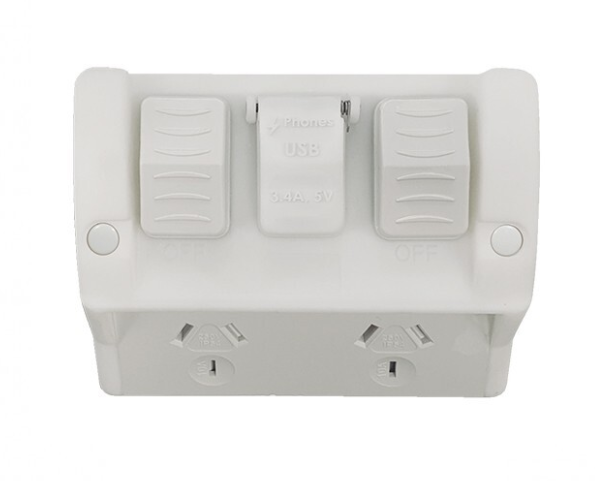 Trader Hippo 2 Gang W/P GPO 10A 250V USB Charger Dual Type A and C 3.4A 5V