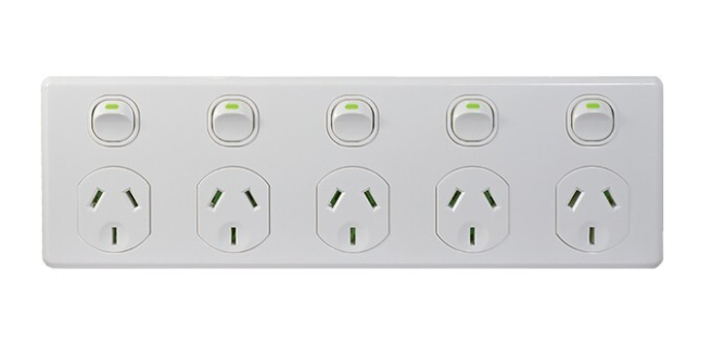 • Double pole surface mounted switched 5 Gang Power Point, 10A at 250V~