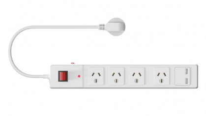 • 4 Outlet Power Board with Dual USB Outlets and Main Switch