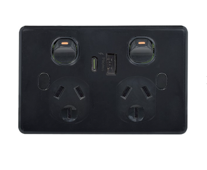 Trader Puma Double GPO 10A Double Pole With A&C USB Charger Vandal Proof Black