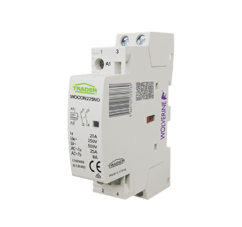 Wolverine Din Rail mounted contactors (WOCON series) offer fast and flexible installation and is suitable for residential and light commercial applications in normally open or normally closed format. Offering reliable performance for board configurations suited from 25A in 2 and 4 pole up to 63A in 4 pole with 230V coils along with the flagging indication of internal contact positions. Perfect for applications where control of larger circuits and isolation is required either in the main or in local sub boards the WOCON series offers great flexibility. The working principle of the contactor: Upon energization, the circuit with current will create a magnetic field and generate sufficient magnetic adhesion to overcome counterforce, close armature and connect the contacts. When the coil voltage dies out or reduces to a certain value (i.e. at the state of voltage release), for the flux generated at the end face of the armature decreases, the magnetic adhesion becomes weaker than the counterforce generated by the reaction spring, contact spring, etc. Under the counterforce, the armature will be released and free from the field yoke, and then the contacts will be disconnected.
