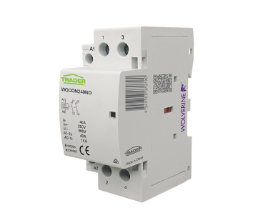 Wolverine Din Rail mounted contactors (WOCON series) offer fast and flexible installation and is suitable for residential and light commercial applications in normally open or normally closed format. Offering reliable performance for board configurations suited from 25A in 2 and 4 pole up to 63A in 4 pole with 230V coils along with the flagging indication of internal contact positions. Perfect for applications where control of larger circuits and isolation is required either in the main or in local sub boards the WOCON series offers great flexibility. The working principle of the contactor: Upon energization, the circuit with current will create a magnetic field and generate sufficient magnetic adhesion to overcome counterforce, close armature and connect the contacts. When the coil voltage dies out or reduces to a certain value (i.e. at the state of voltage release), for the flux generated at the end face of the armature decreases, the magnetic adhesion becomes weaker than the counterforce generated by the reaction spring, contact spring, etc. Under the counterforce, the armature will be released and free from the field yoke, and then the contacts will be disconnected.