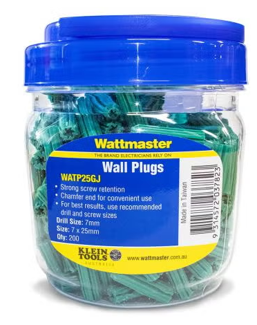 Wattmaster Anchor Wall Plug Green Length 25mm In Storage Jar Of 200 Plugs