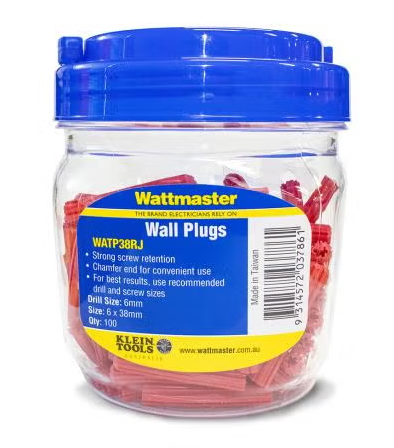 Wattmaster Anchor Wall Plug Red Length 38mm In Storage Jar Of 100 Plugs