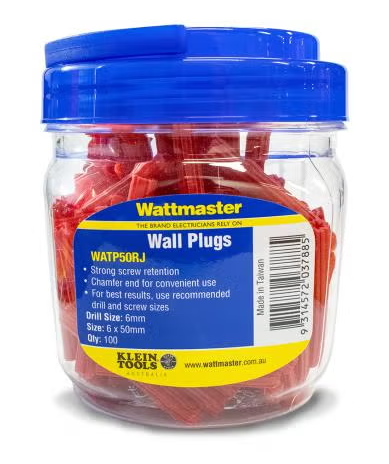 Wattmaster Anchor Wall Plug Red Length 50mm In Storage Jar Of 100 Plugs